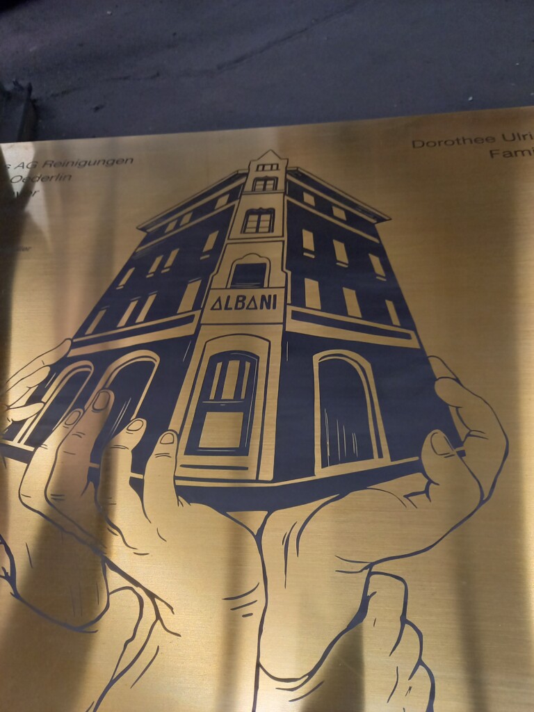 Schild satiniert und bedruckt
